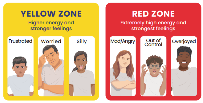 - Talk about what tool you will use to be in the appropriate Zone (e.g.: “I need to take four deep breaths to help get me back to the Green Zone.”)