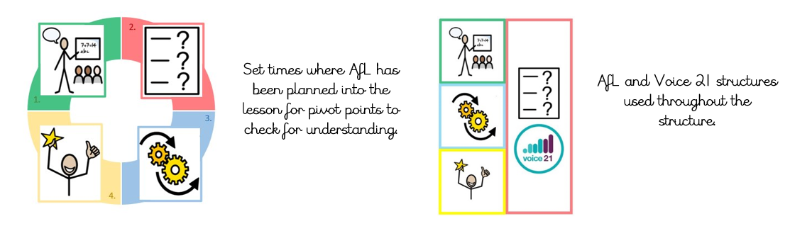 Throughout the four-part lesson structure, teachers take deliberate steps to ensure that all pupils are supported both cognitively and emotionally. This includes identifying and responding to individual needs related to attention, working memory, emotional regulation, and engagement. Teachers communicate these needs clearly to support staff, ensuring that Learning support Assistances (LSAs) are effectively deployed to reinforce adaptive teaching strategies.